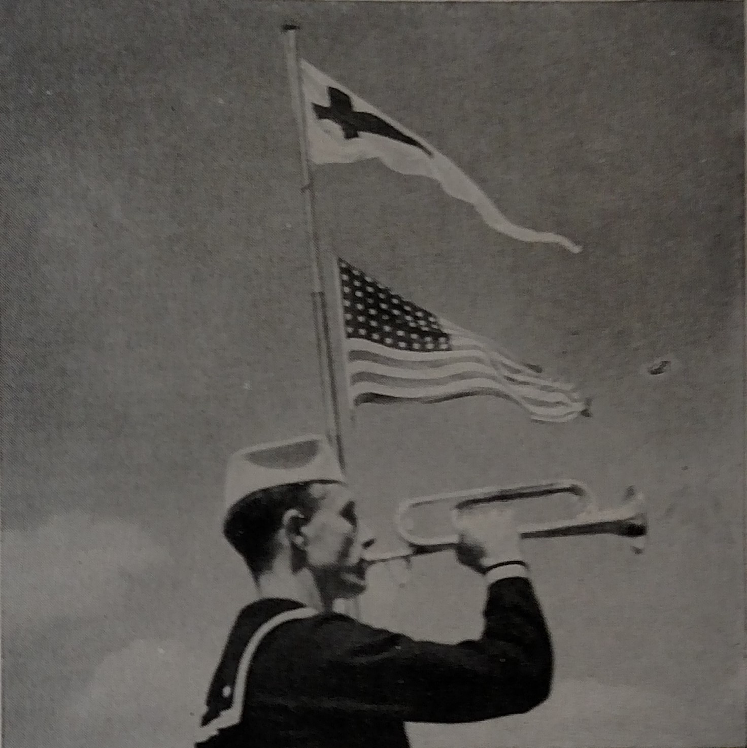 Early on, the flying of the “church pennant” above the national flag was simply Navy tradition used “as a signal by ships at sea to denote to other ships that Divine Service is being held on board the vessel where the pennant flies.”1