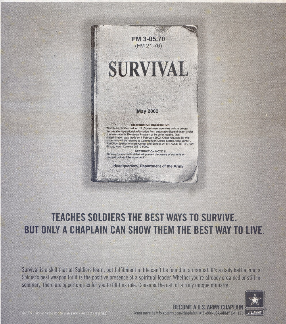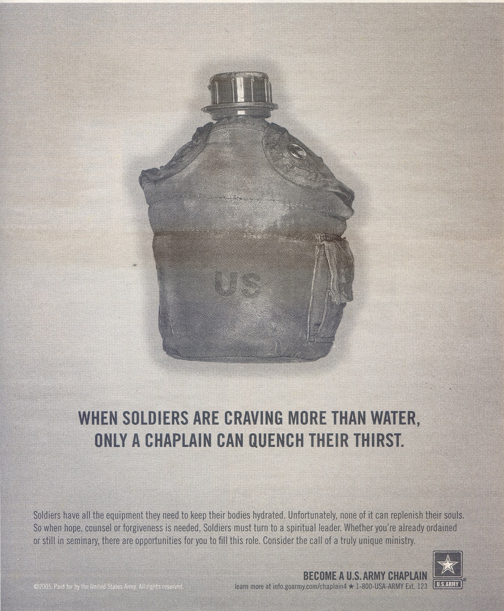 In 2007, the Army Chaplain Corps ran a series of ads that appeared at least in Army Times, in an effort to encourage people “already ordained or still in seminary” to “consider the call of a truly unique ministry.” I’ve recently come across two of these ads from September and October 2007 issues of Army Times. Have you considered the call?