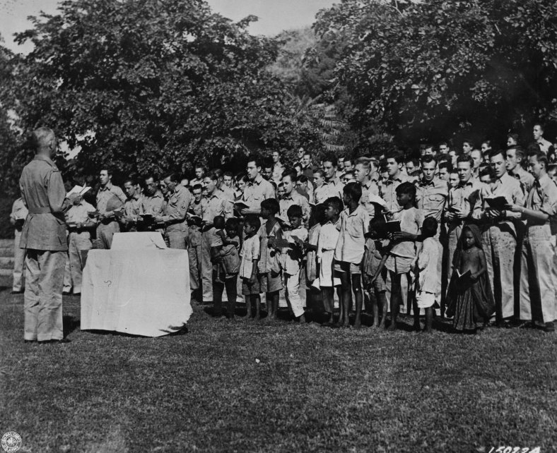 U.S. Soldiers Caroleers Circle Globe. The Christmas spirit is universal, the traditions unchanging even in the midst of war. Where ever our American troops are to be found throughout the world Christmas Carols will be heard in joyful hymns on the eve of the Nativity of Christ. In India – “Come and Behold Him, Born the King of Angels”. 1942