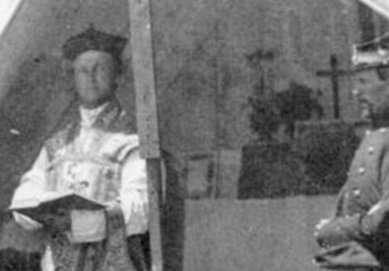 Portion of famous Matthew Brady photograph of Chaplain Mooney conducting mass for the 69th New York State Militia encamped at Fort Corcoran, before the First Battle of Bull Run 21 July 1861.