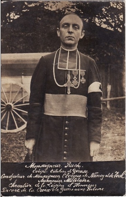 French chaplain, Monsignor Ruch. More than a priest and chaplain, Monseigneur Ruch was bishop and was commissioned in 1917, together with Mgr Llobet, to hold the function of “ecclesiastical inspector armies” that is to say to control and coordinate the activity of 500 (approximately) holders chaplains and volunteers in service.
