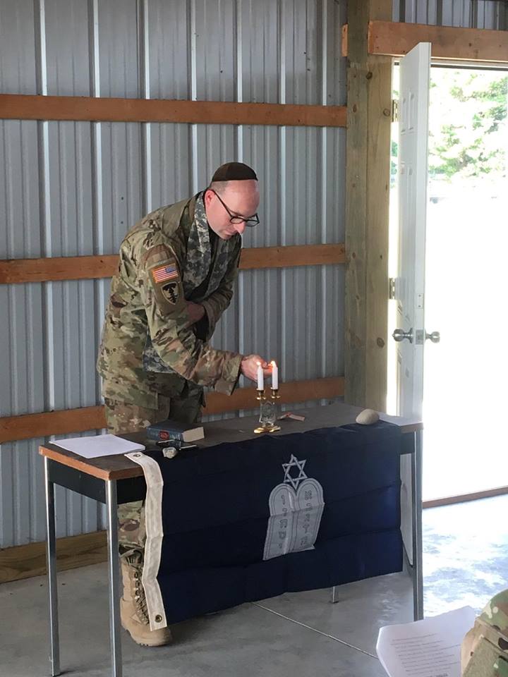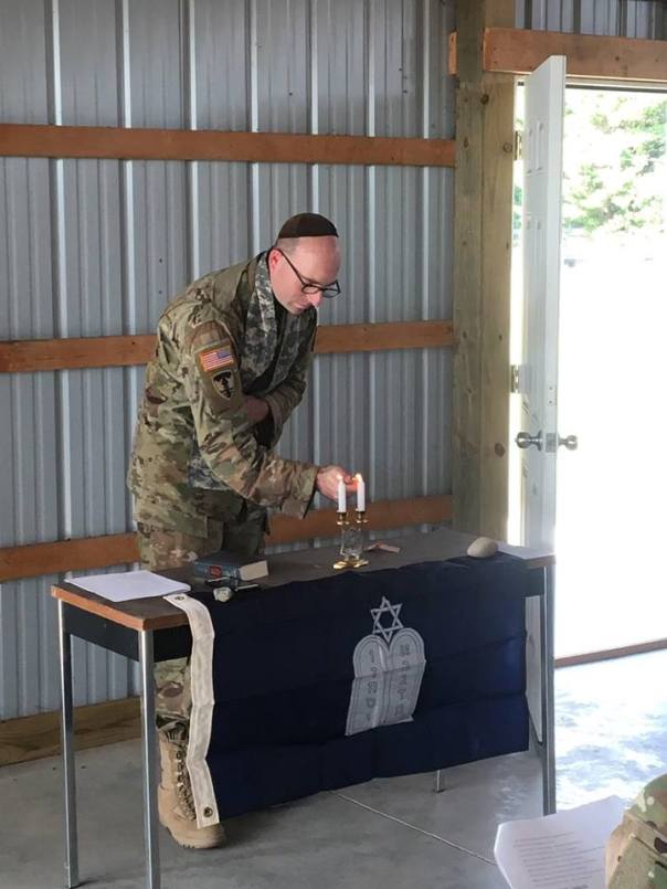 “Chaplain Aaron Rozovsky, a JWB Rhode Island National Guard chaplain, recently served as brigade chaplain during a military exercise called Northern Thunder, exercises that took place in Northern Michigan over several weeks. His unit has been serving since WWI … also a great picture of him doing Shabbat service he led [which] took place under a live-fire exercise to simulate a potential wartime situation…” (JWB Facebook page)