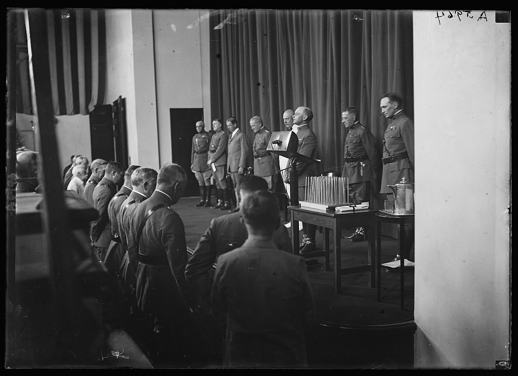 Chaplain Julian E. Yates pronouncing the benediction at the Army War College, 1923 (Library of Congress).
