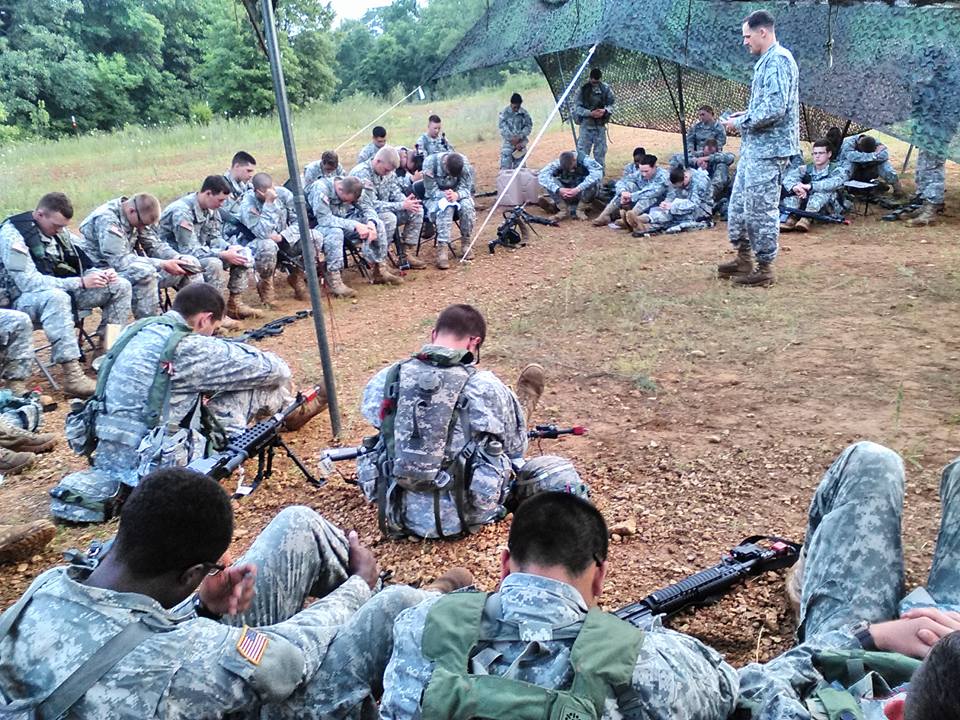 Chaplain Matthew Runals leads his second field service of the day for the Soldiers in the Cadet Leaders Course (CLC), Cadet Command Summer Training, July 2015, Fort Knox, KY (photo courtesy of Matthew Runals).