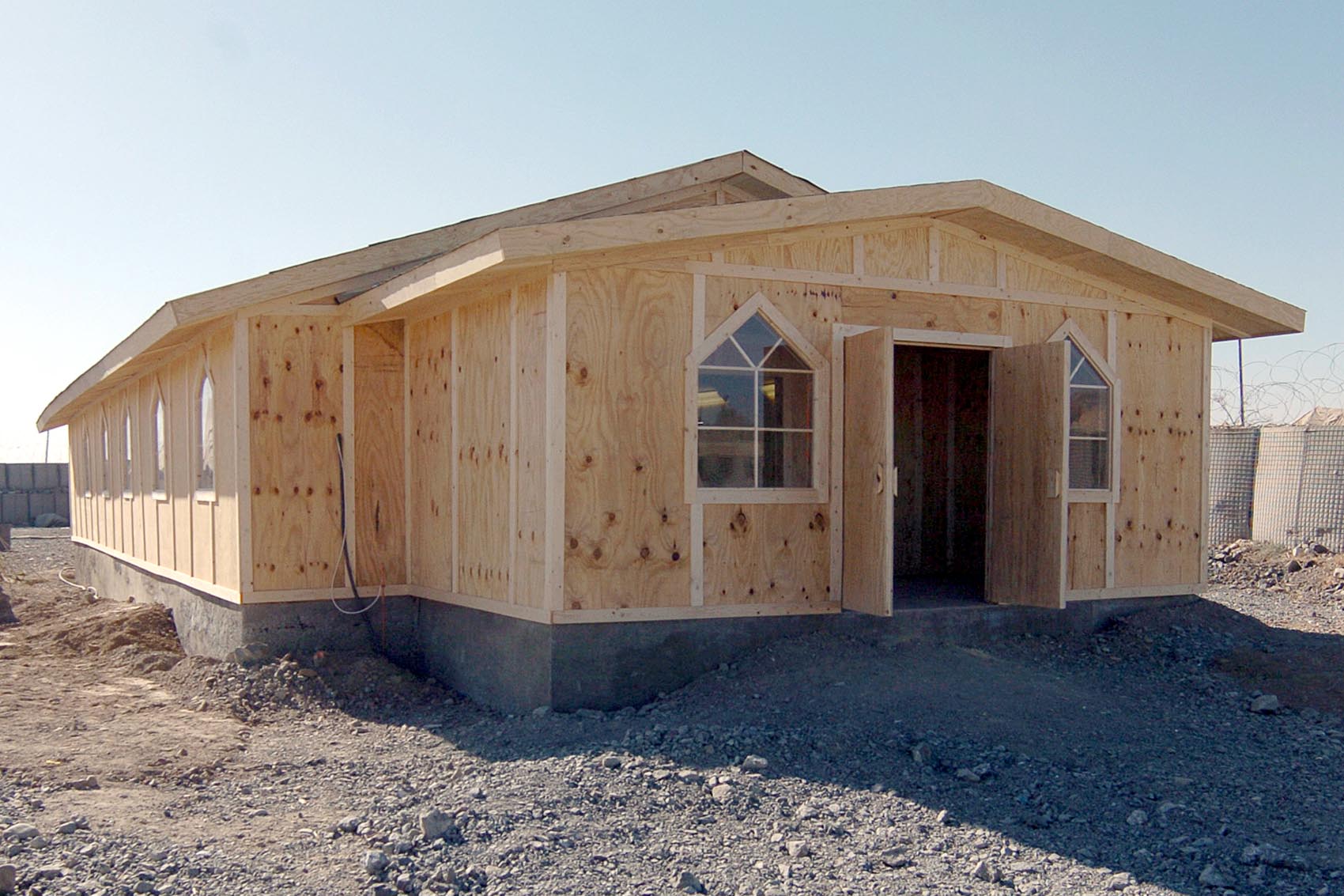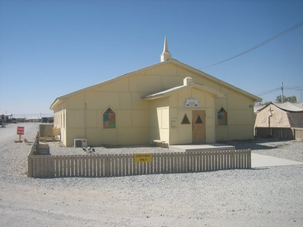 “Although some finishing work remains, the new chapel at Forward Operating Base Salerno, Afghanistan, opened its doors Dec. 15, 2004 replacing a cramped tent that previously served as the chapel.” (Photo by Staff Sgt. Bradley Rhen, from http://www.25idl.army.mil/Deployment/OEF%20Afghanistan/Deployment/27Dec04pictures.htm)