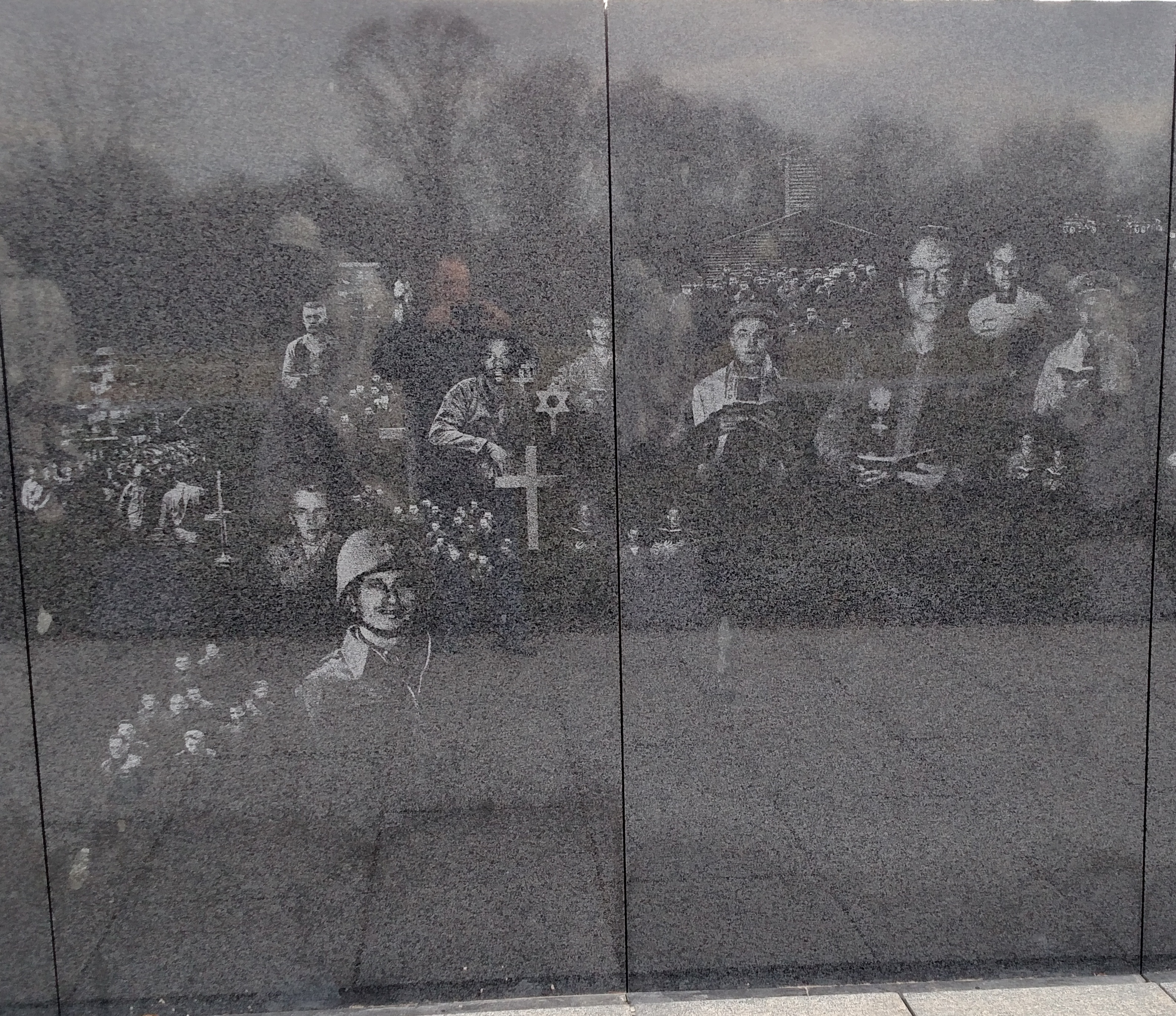 The Korean War Veterans Memorial in Washington D.C. includes a mural wall with 41 panels, each with pictures (from the National Archives) of the various services and branches of the U.S. military who served. The 12th and 13th panels have chaplains depicted on them. This is a moving memorial, as the faces of those who served gaze back at you with your reflection among them.