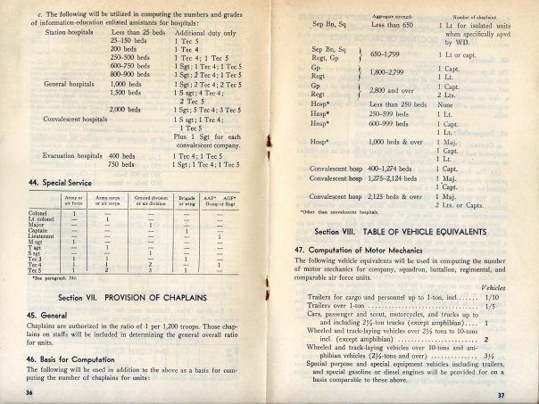 Pages 36-37 of TM 20-410, Development and Preparation of Organizational and Equipment Authorization Tables, War Department, April 1947 (author’s collection)