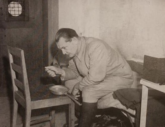 I stopped next at the cell of Hermann Goering. I dreaded meeting the big, flamboyant egotist worse than any of the others. Through the small aperture I had a chance to size him up for a moment. He was reading a book and smoking his meerschaum pipe. As I entered, he jumped up and clicked his heels. I greeted him in German, and he bowed. Then he said, “Will you come in and spend some time with me?”