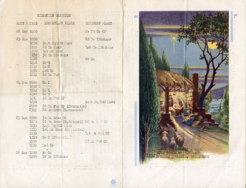 Worship Bulletin from the Christmas Day Service, 1951, 7th Infantry Regiment, Korea (author’s collection).