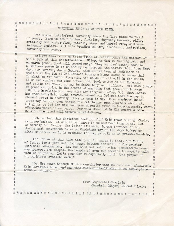 Inside of the Worship Bulletin from the Christmas Day Service, 1951, 7th Infantry Regiment, Korea (author’s collection).