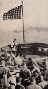 “The school also helps each chaplain to live up to the corp’s motto–Cooperation Without Compromise. This creed takes on a greater meaning when the Stars and Stripes take second place to the Banner of God that flies above it during Sunday worship. To Navy men and Marines this pennant with a blue cross on a white field stands for freedom of worship. To the world it says–Religion without Compromise.”