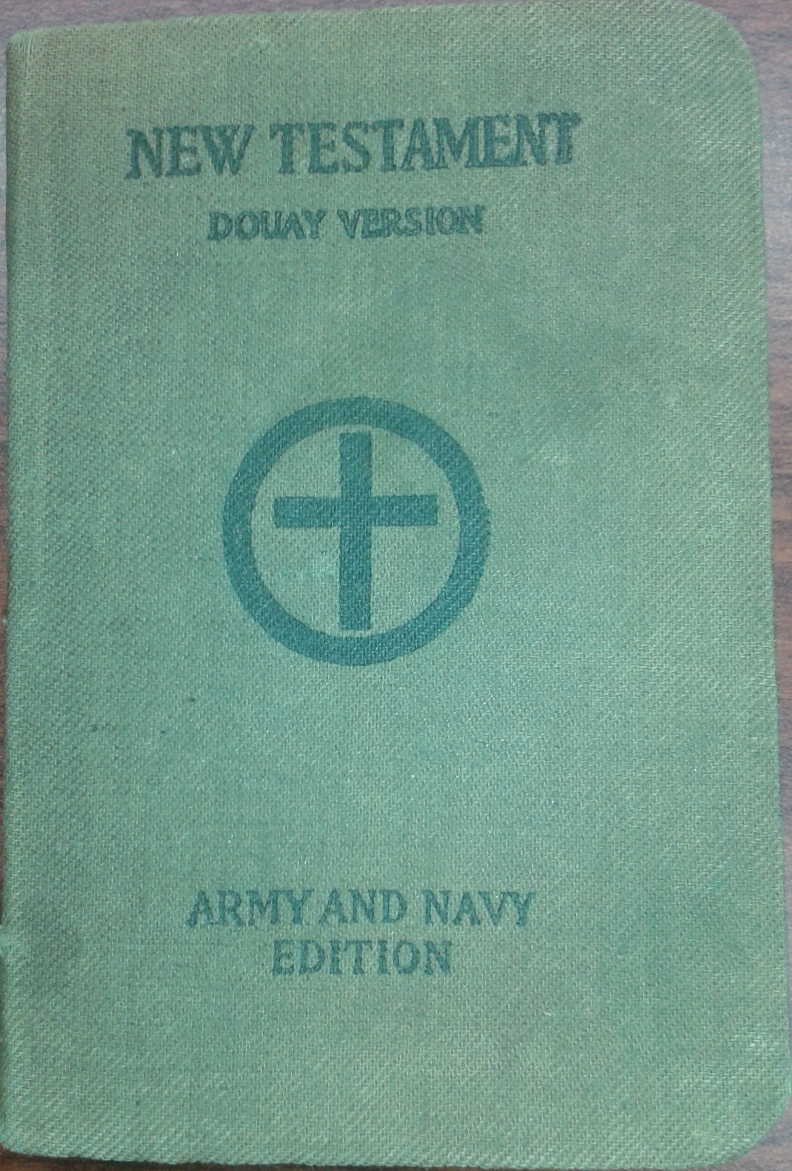 New Testament, Douay Version, Army and Navy Edition. “Special Edition for the Army and Navy with a Foreward by His Eminence James Cardinal Gibbons.” Published by The National Catholic War Council for The Chaplains’ Aid Association, 1918 (author’s collection).
