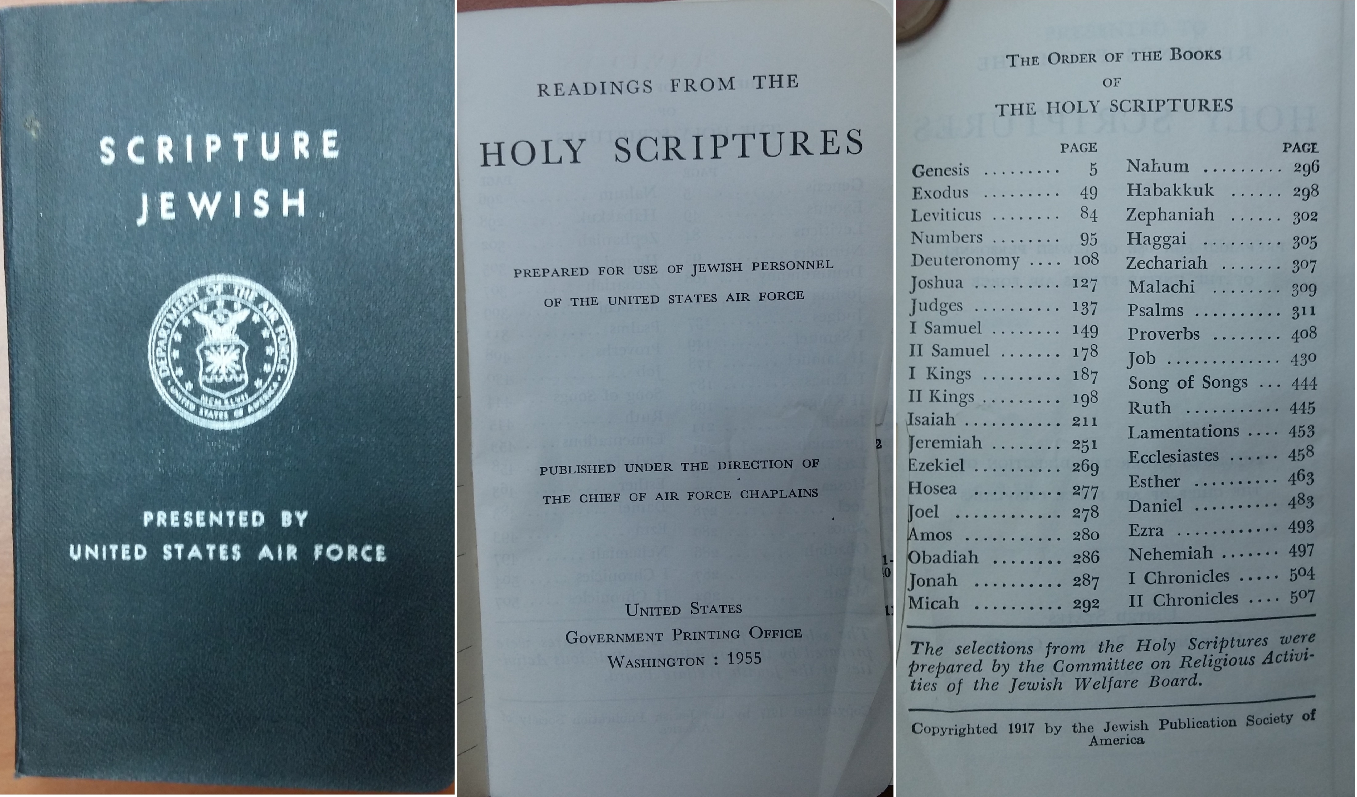 Jewish Scriptures, Air Force Chief of Chaplains, GPO 1955, originally published in 1917 by the Jewish Publication Society of America (author’s collection).