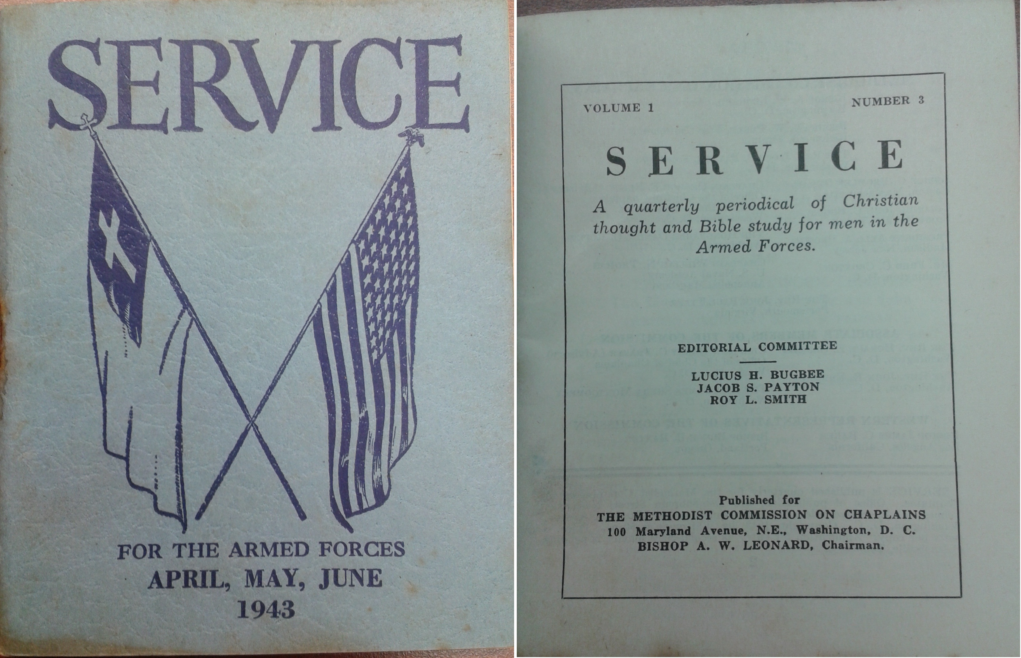 “Service for the Armed Forces,” April, May, June 1943. Published for The Methodist Commission on Chaplains, Washington, D.C. (author’s collection).