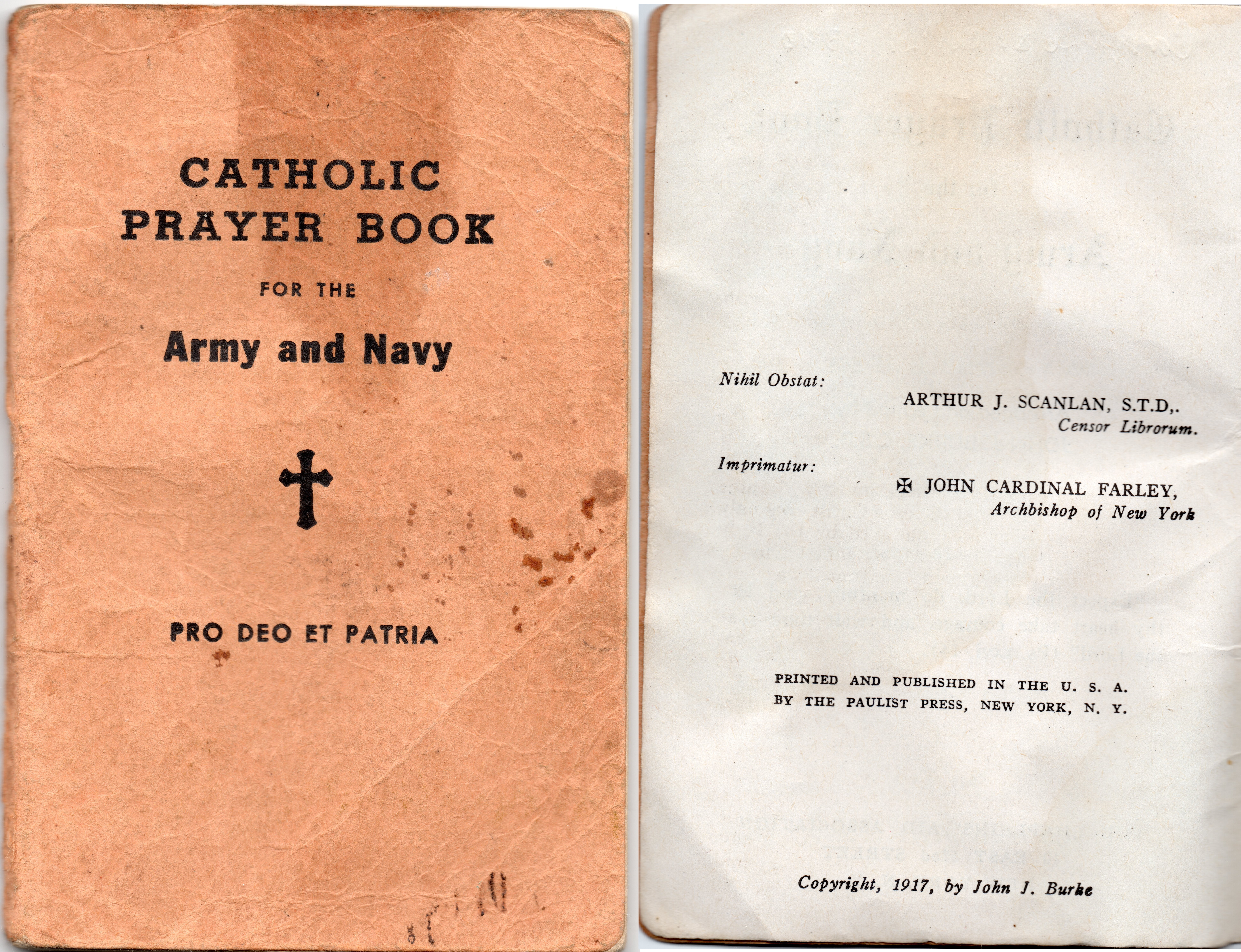 Catholic Prayer Book for the Army and Navy. Printed and published in the U.S.A. by The Paulist Press, New York, N.Y. Copyright 1917 by John J. Burke (author’s collection).